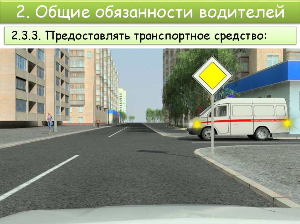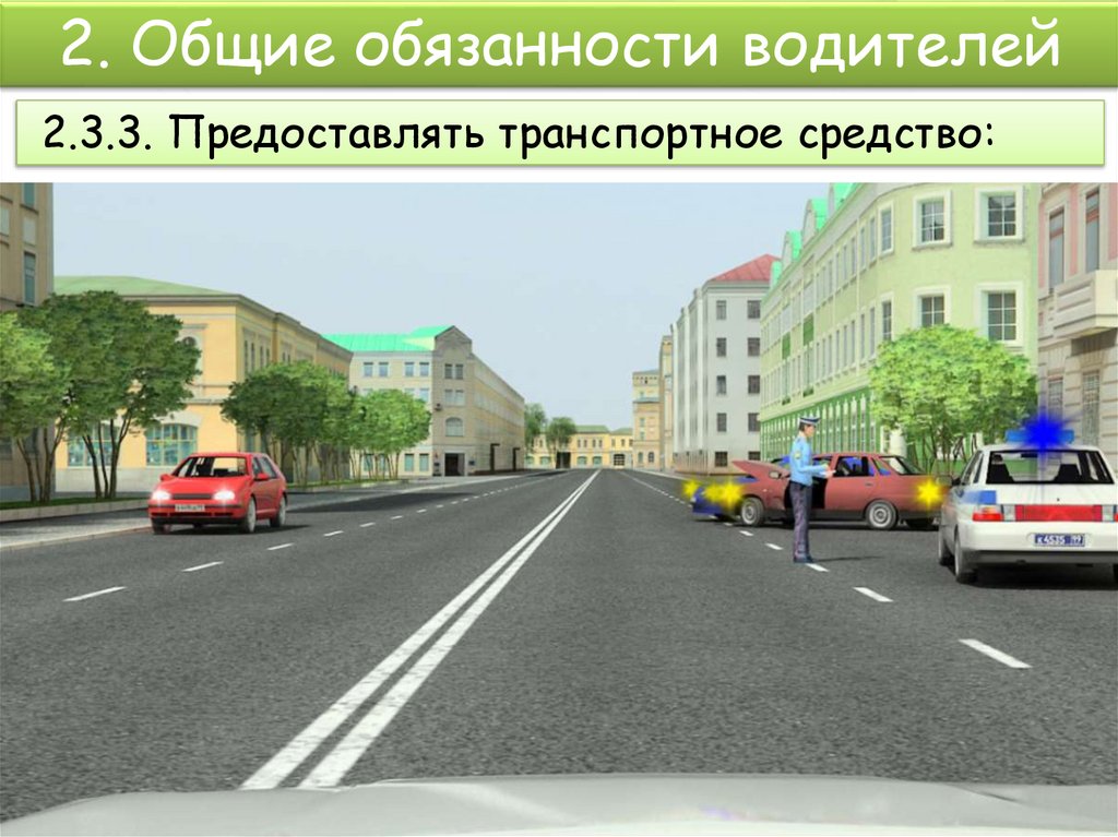 2. Общие обязанности водителей2.3.3. Предоставлять транспортное средство:
