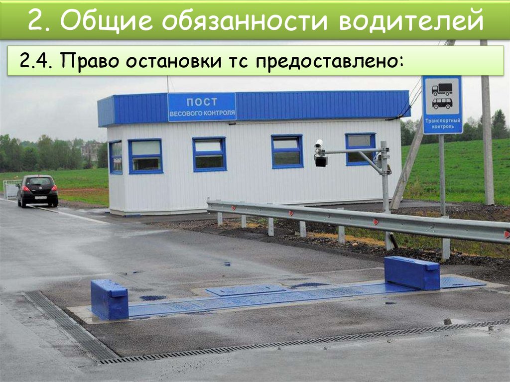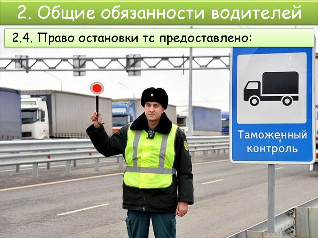 2. Общие обязанности водителей2.4. Право остановки тс предоставлено: