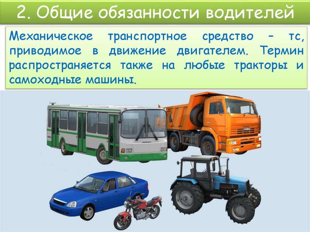 2. Общие обязанности водителейМеханическое транспортное средство – тс,