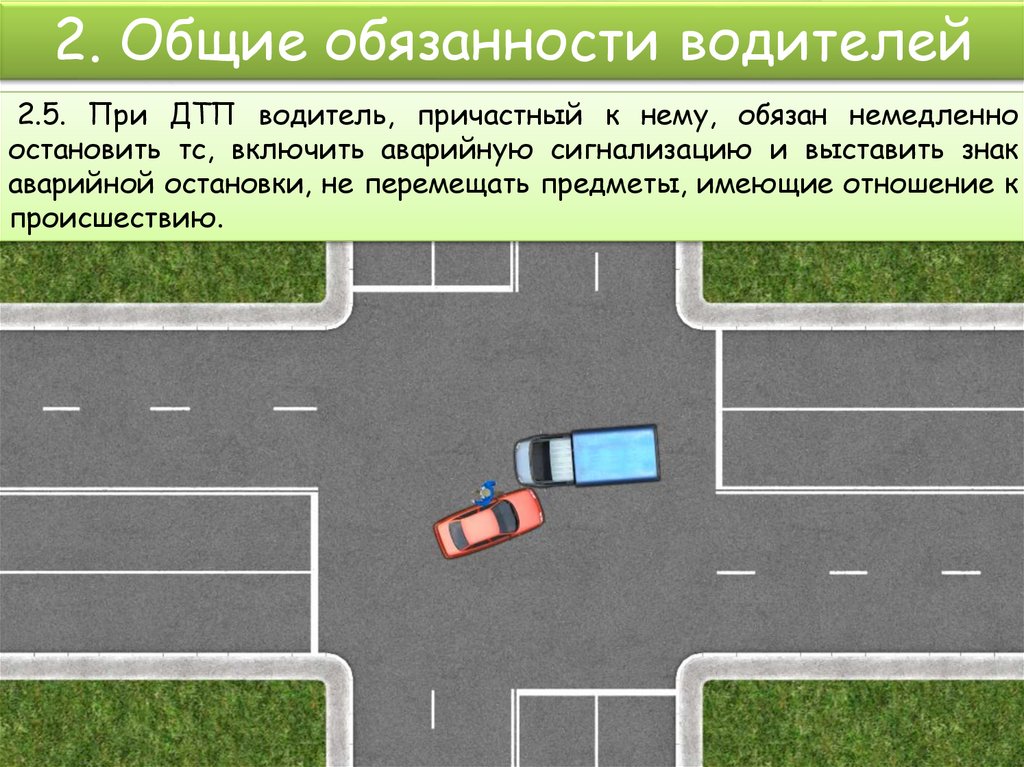 2. Общие обязанности водителей2.5. При ДТП водитель, причастный к нему, обязан немедленно