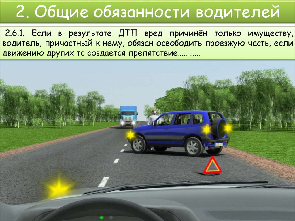 2. Общие обязанности водителей2.6.1. Если в результате ДТП вред причинён только имуществу,