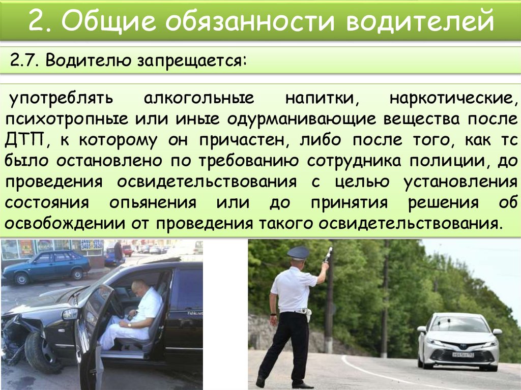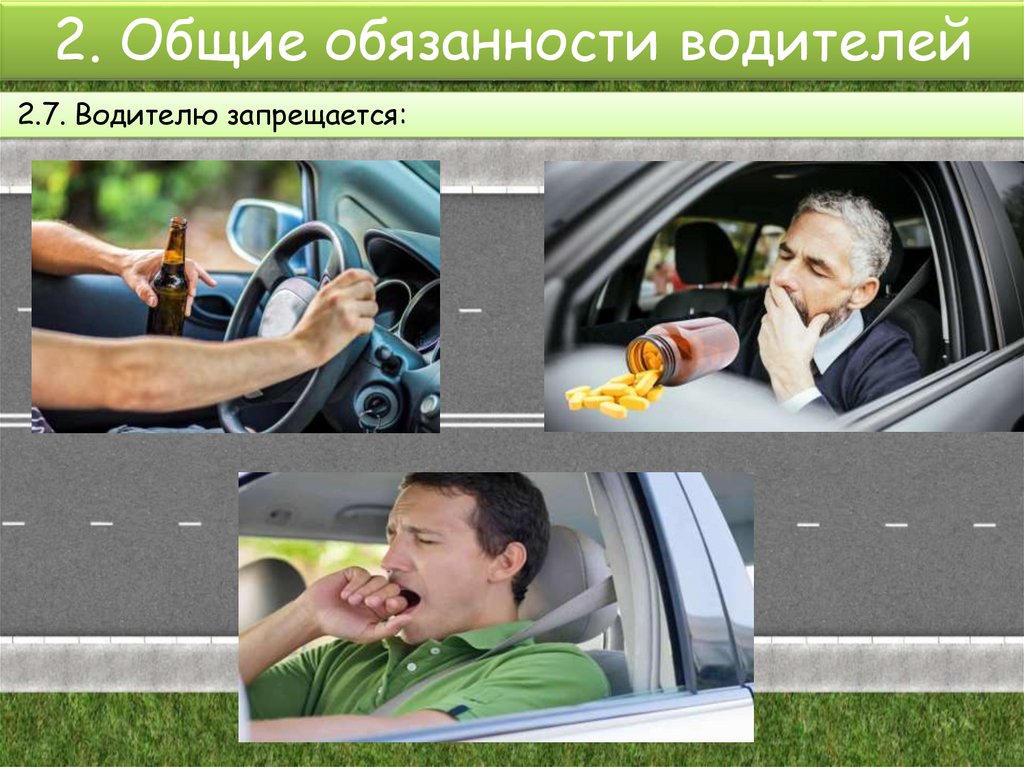 2. Общие обязанности водителей2.7. Водителю запрещается: