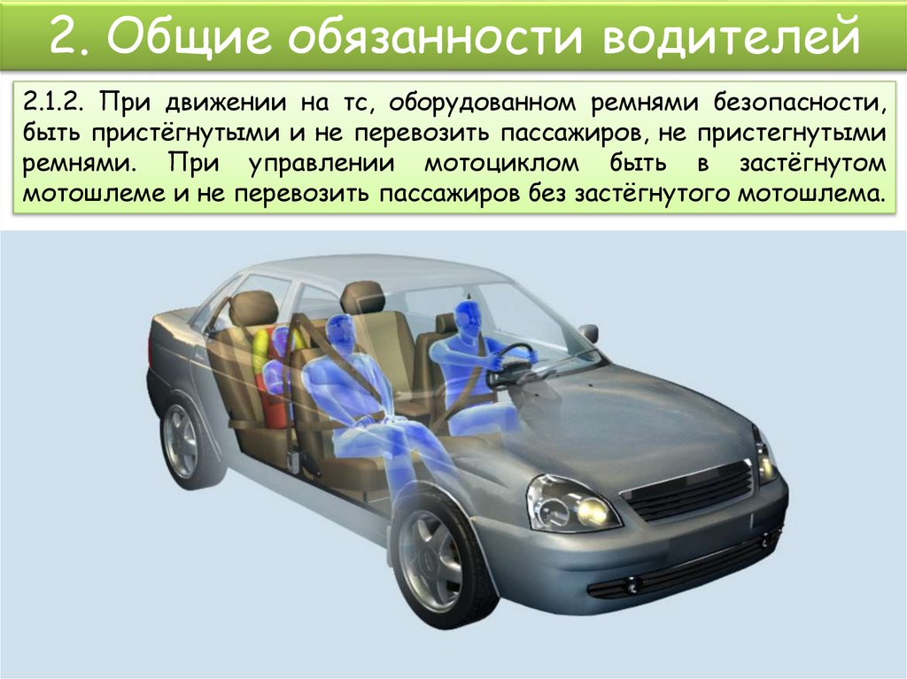 2. Общие обязанности водителей2.1.2. При движении на тс, оборудованном ремнями безопасности,