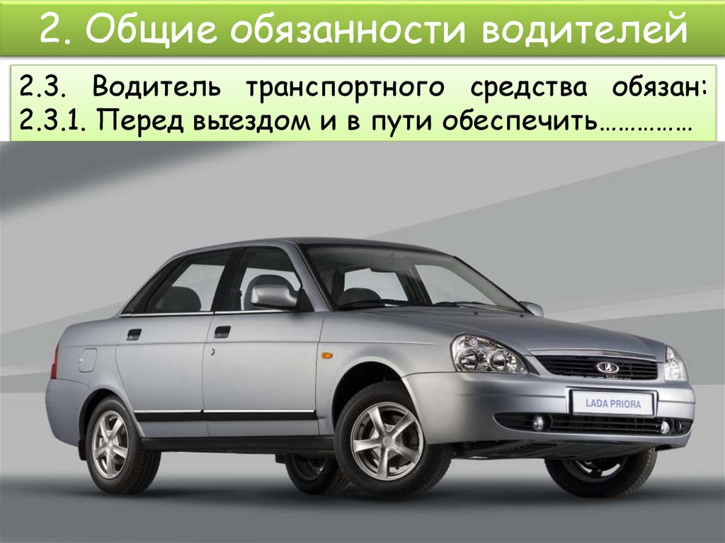 2. Общие обязанности водителей2.3. Водитель транспортного средства обязан: