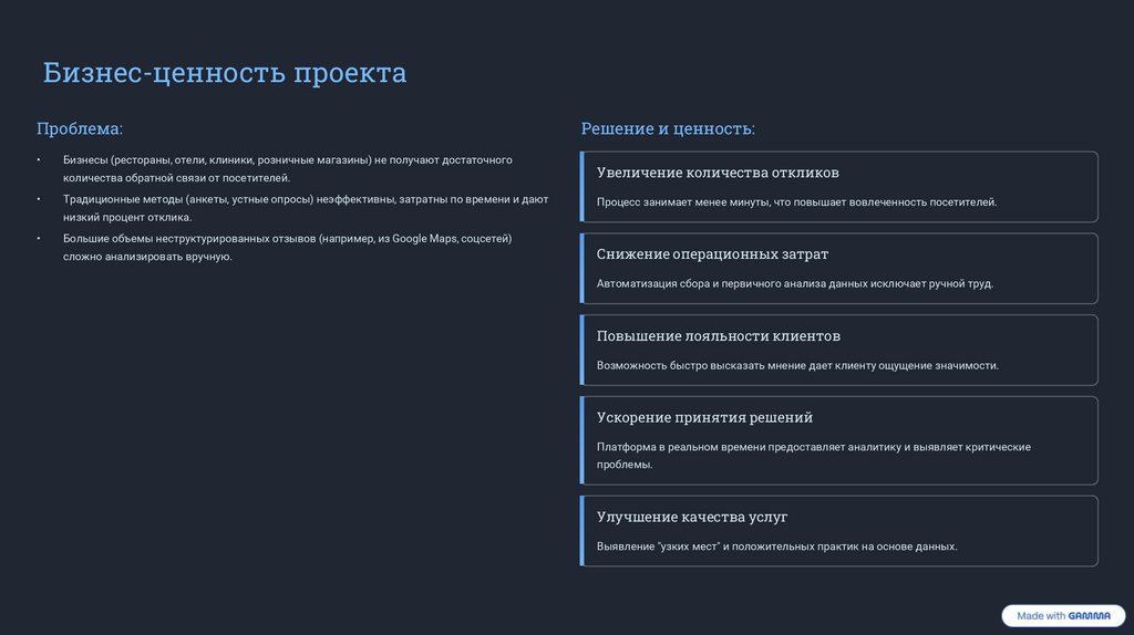 Бизнес-ценность проектаПроблема: