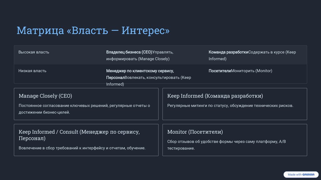 Матрица «Власть — Интерес»Высокая власть
