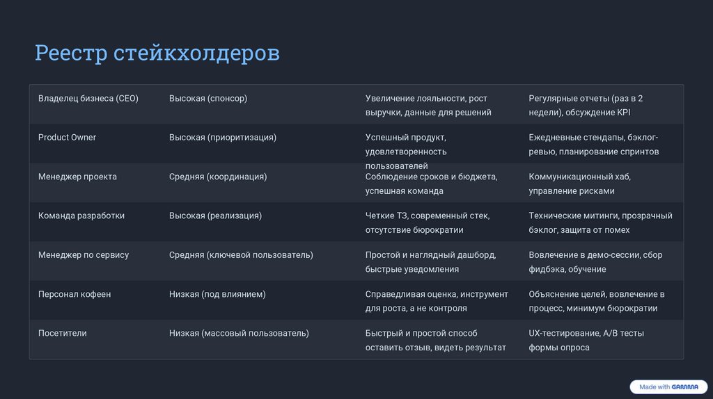 Реестр стейкхолдеровВладелец бизнеса (CEO)