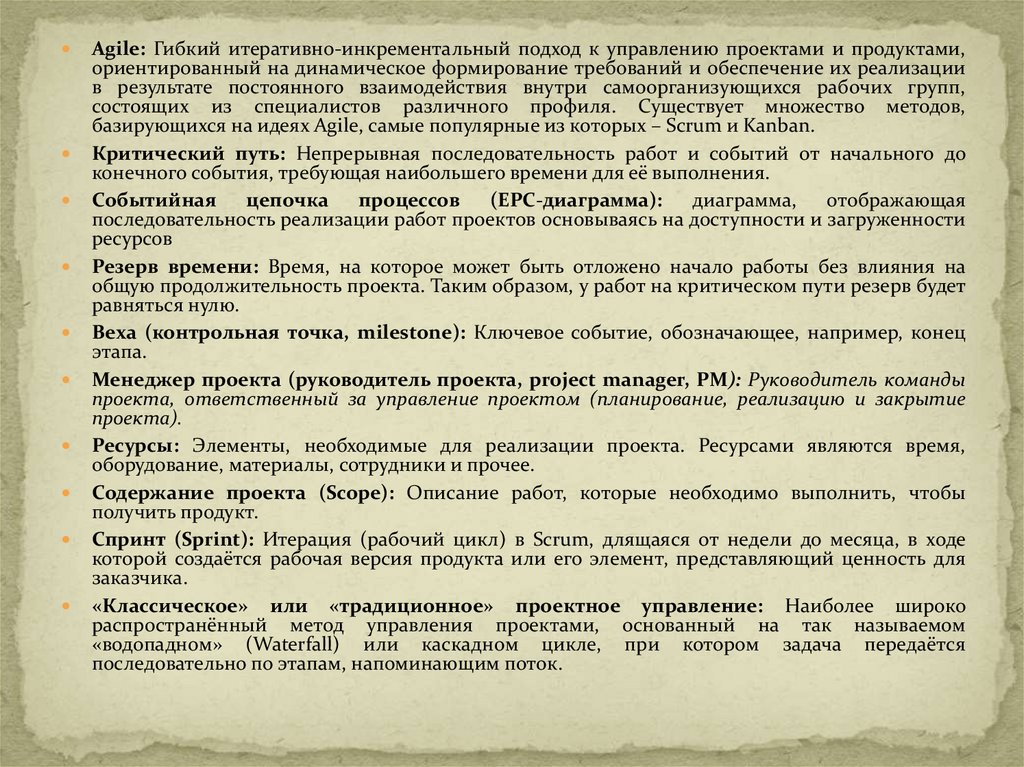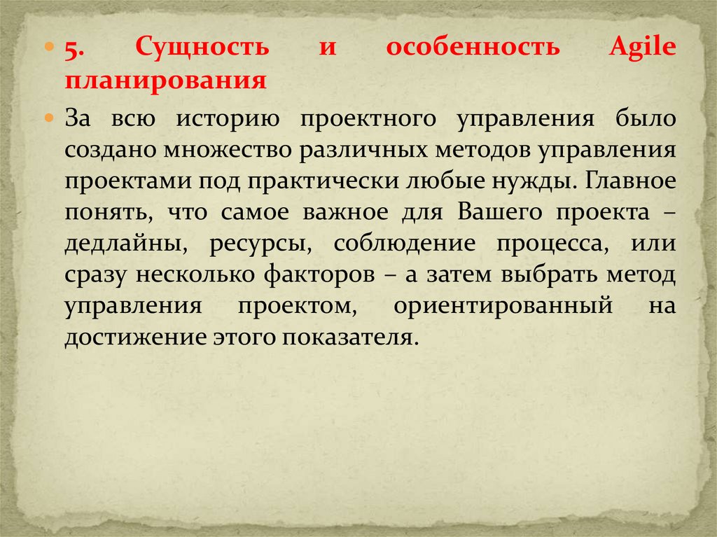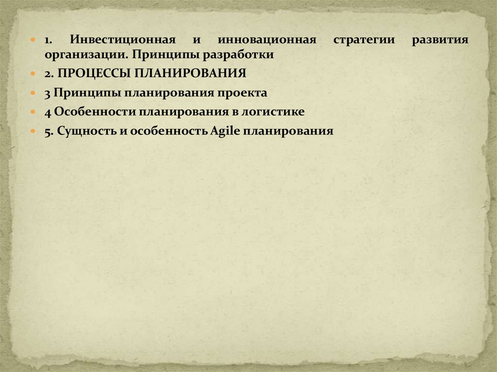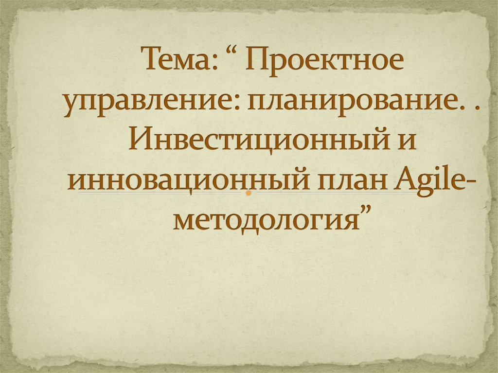 1. Тема: “ Проектное управление: планирование. . Инвестиционный и инновационный план Agile-методология”