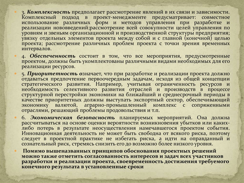 Например, самоорганизация, мотивация персонала, принцип устойчивого