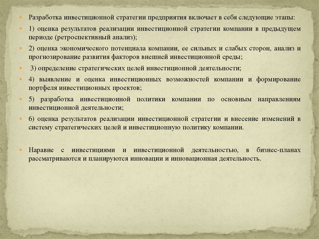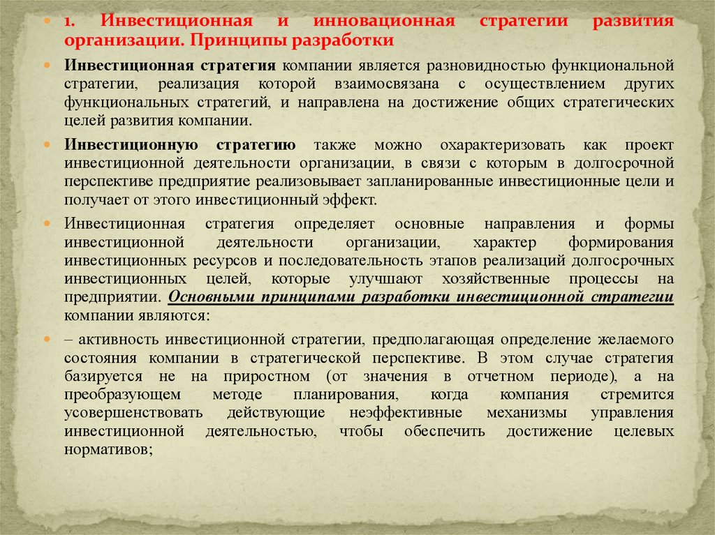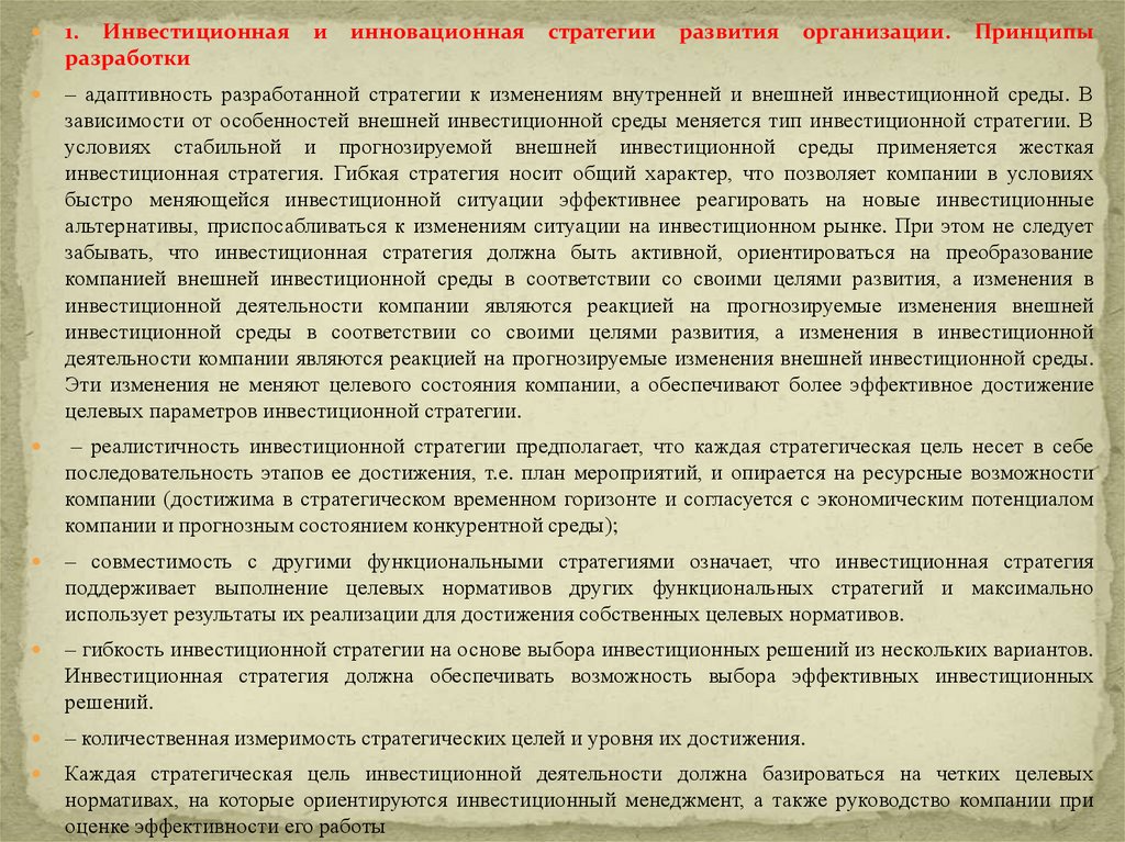 предприятии. Основными принципами разработки инвестиционной стратегии