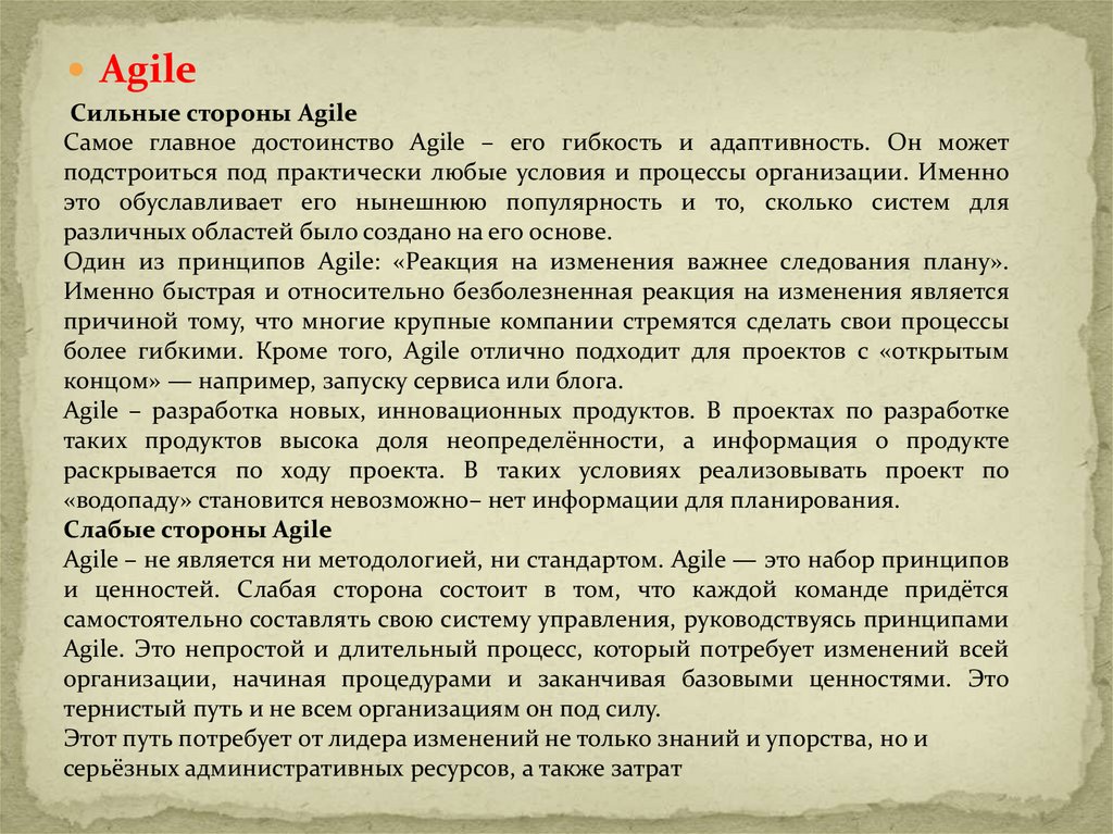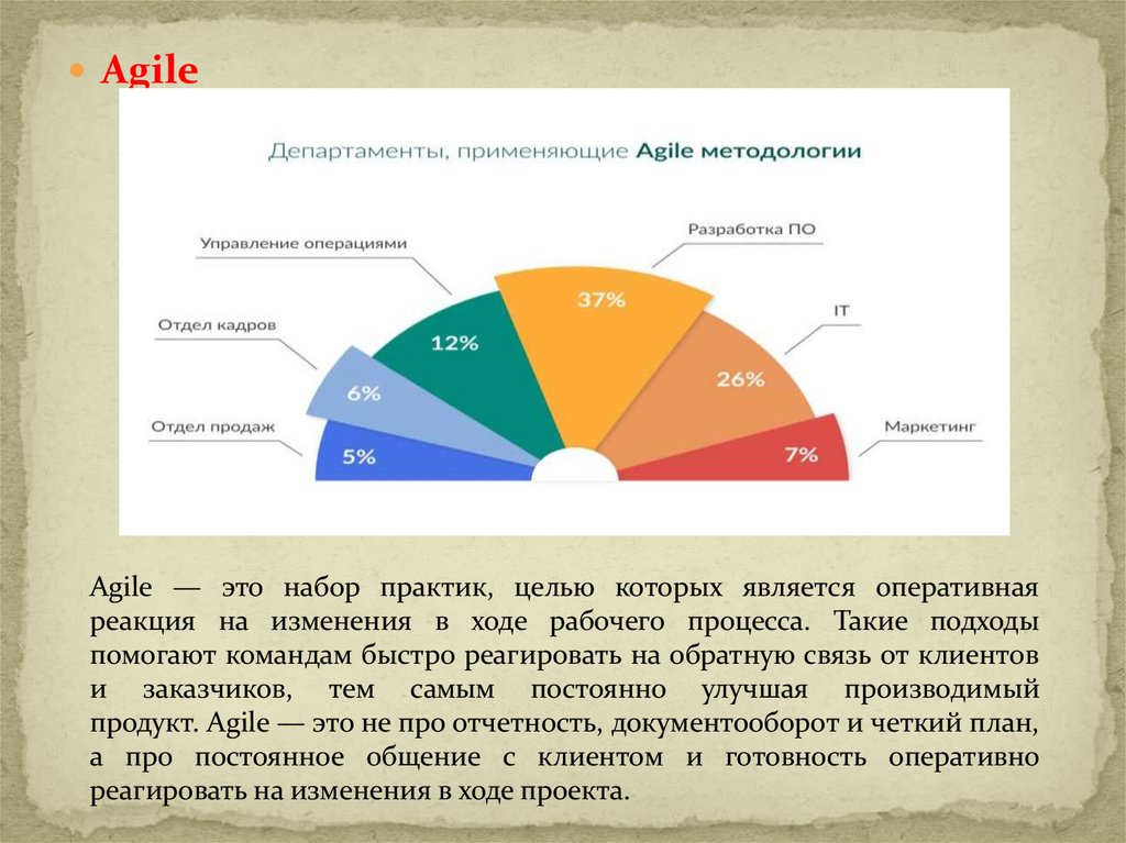 предполагают работу в команде. Для успешного внедрения Agileметодологий необходимо создать культуру командной работы, где