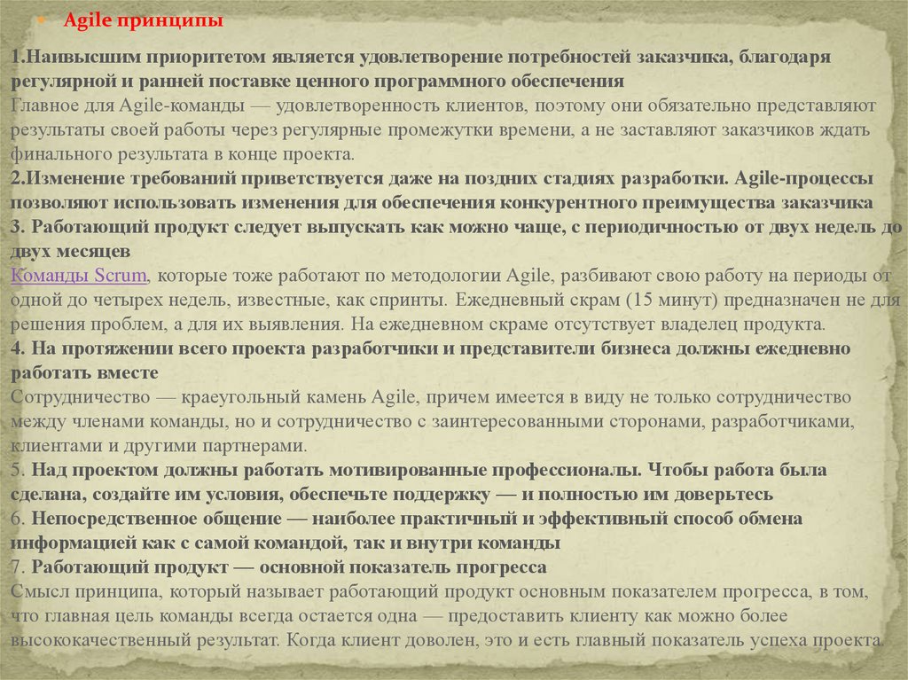 Помимо общих правил, есть несколько способов, как внедрить ценности ипринципы Agile в коллективе.