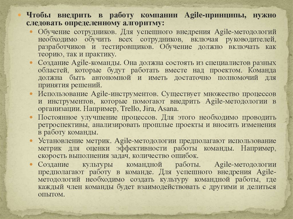 Чтобы внедрить в работу компании Agile-принципы, нужноследовать определенному алгоритму: