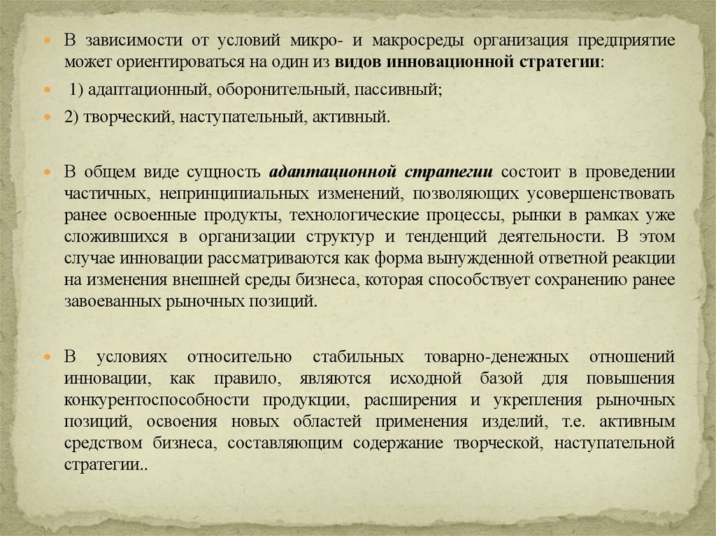 На основе вводимых инноваций, разрабатывается инновационная стратегия. Она