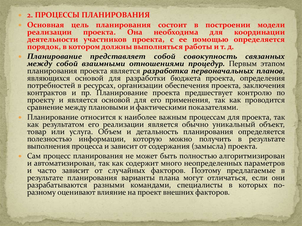 2. ПРОЦЕССЫ ПЛАНИРОВАНИЯ