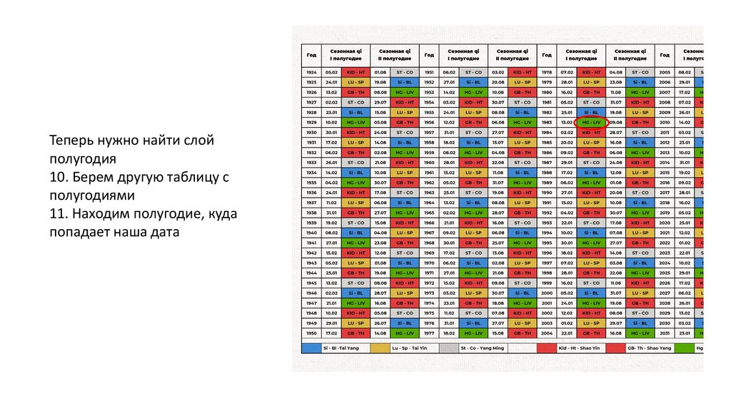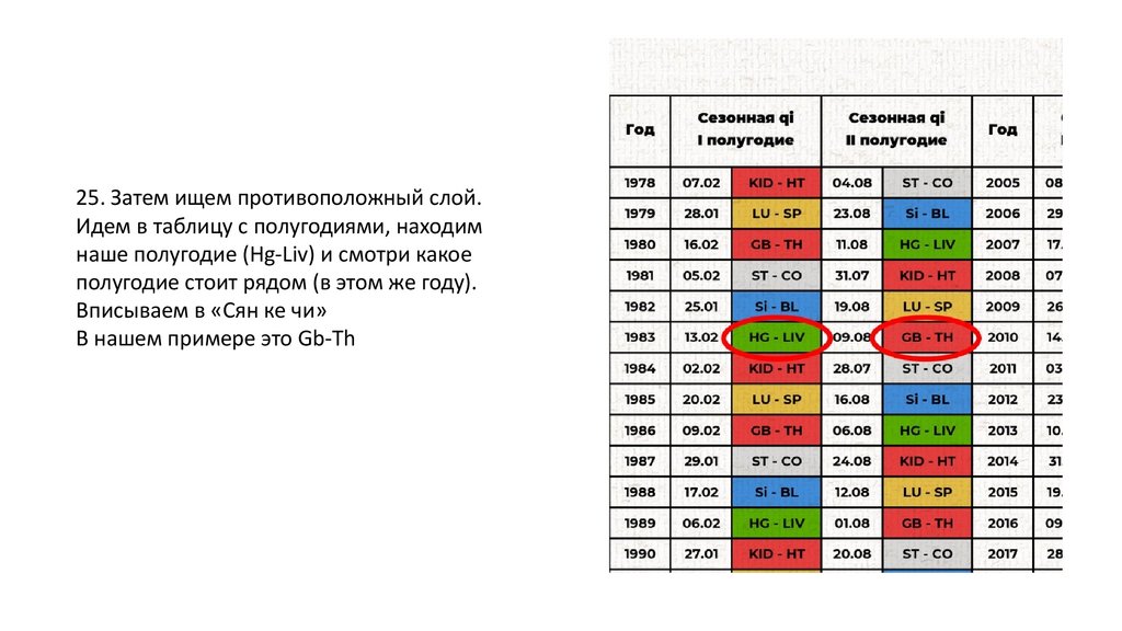 25. Затем ищем противоположный слой.Идем в таблицу с полугодиями, находим