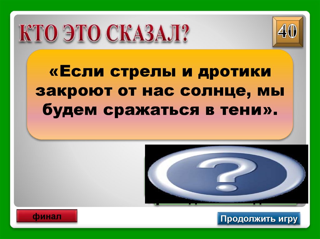 «Если стрелы и дротикизакроют от нас солнце, мы