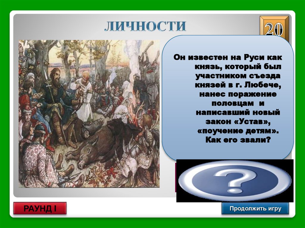 Составил первый закон на Руси,основал Софийский собор, КиевоПечерский монастырь, город Ярославль