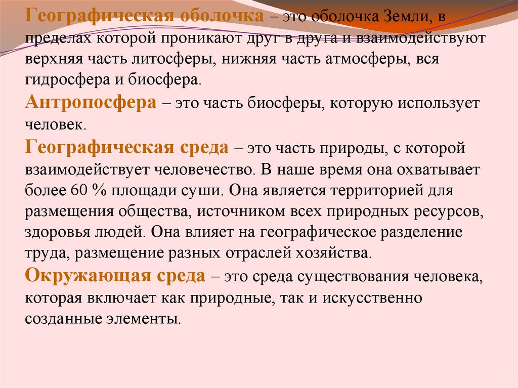 Географическая оболочка – это оболочка Земли, впределах которой проникают друг в друга и взаимодействуют