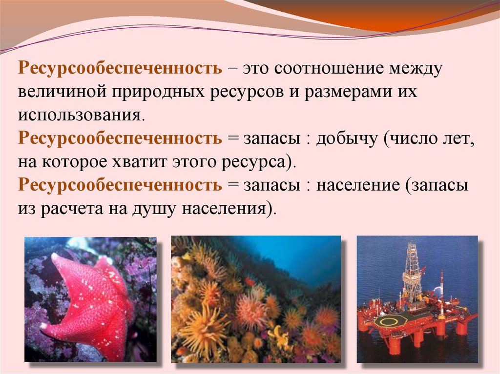 Ресурсообеспеченность – это соотношение междувеличиной природных ресурсов и размерами их