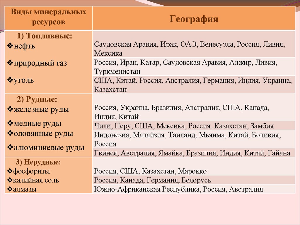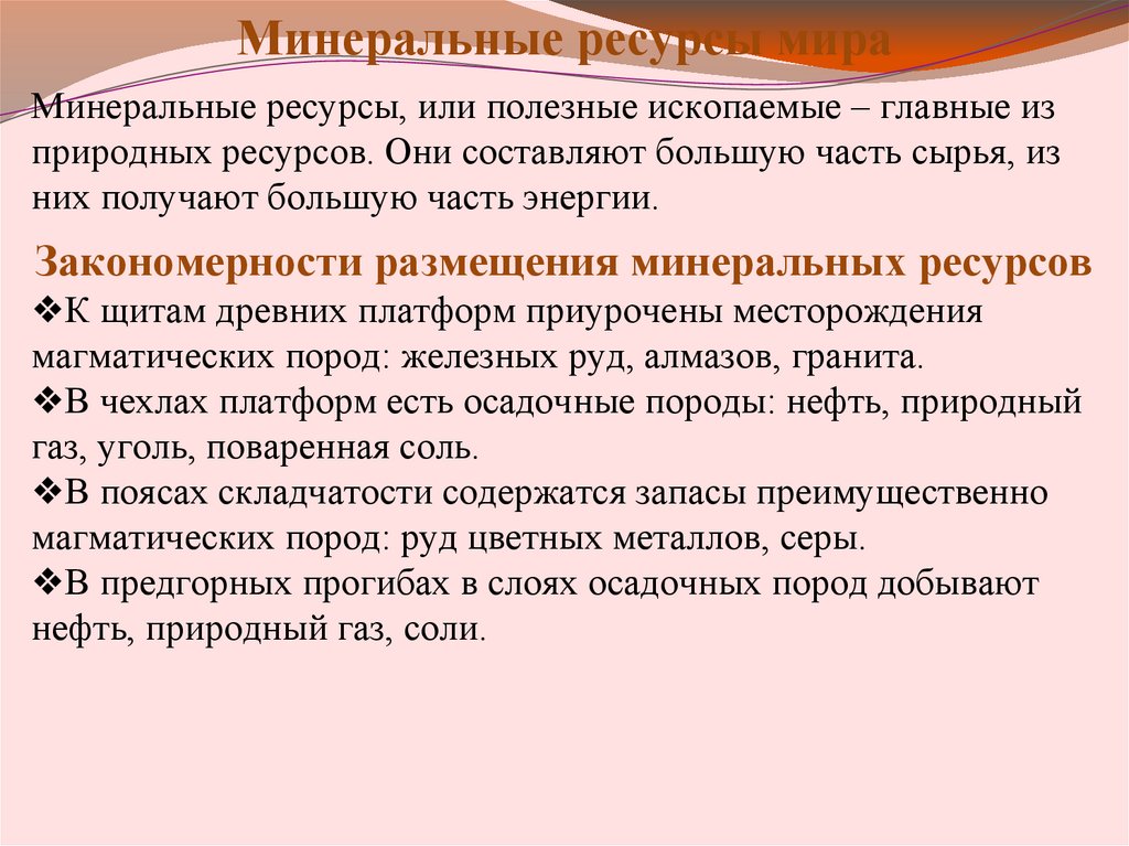 Минеральные ресурсы мираМинеральные ресурсы, или полезные ископаемые – главные из