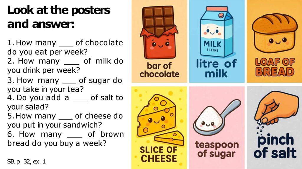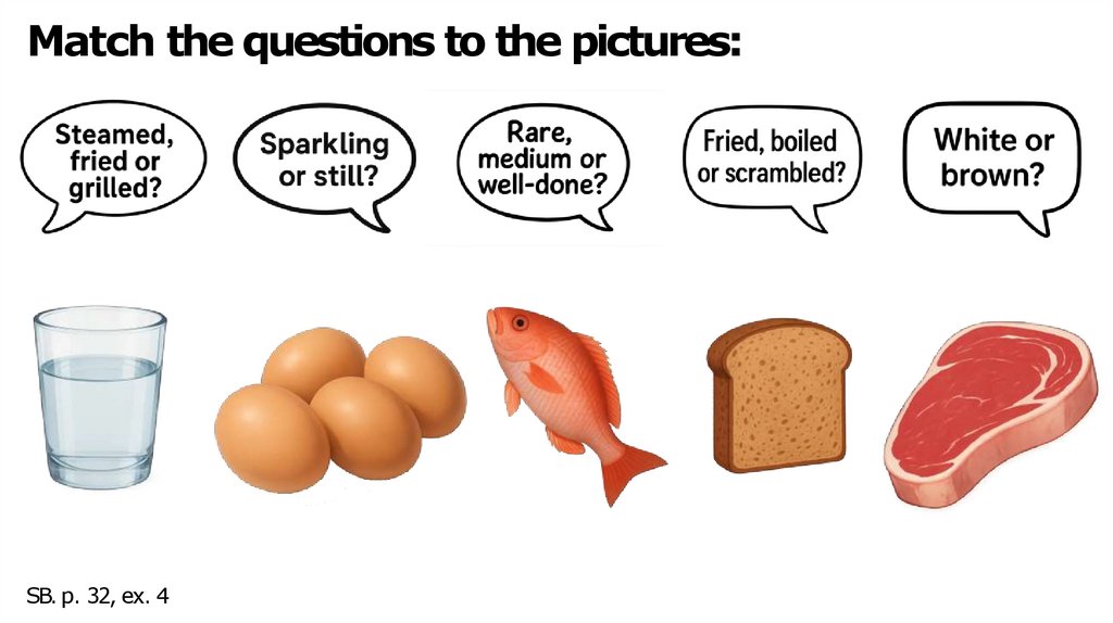 Match the questions to the pictures:SB. p. 32, ex. 4