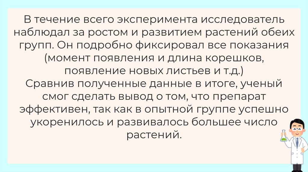 В течение всего эксперимента исследовательнаблюдал за ростом и развитием растений обеих