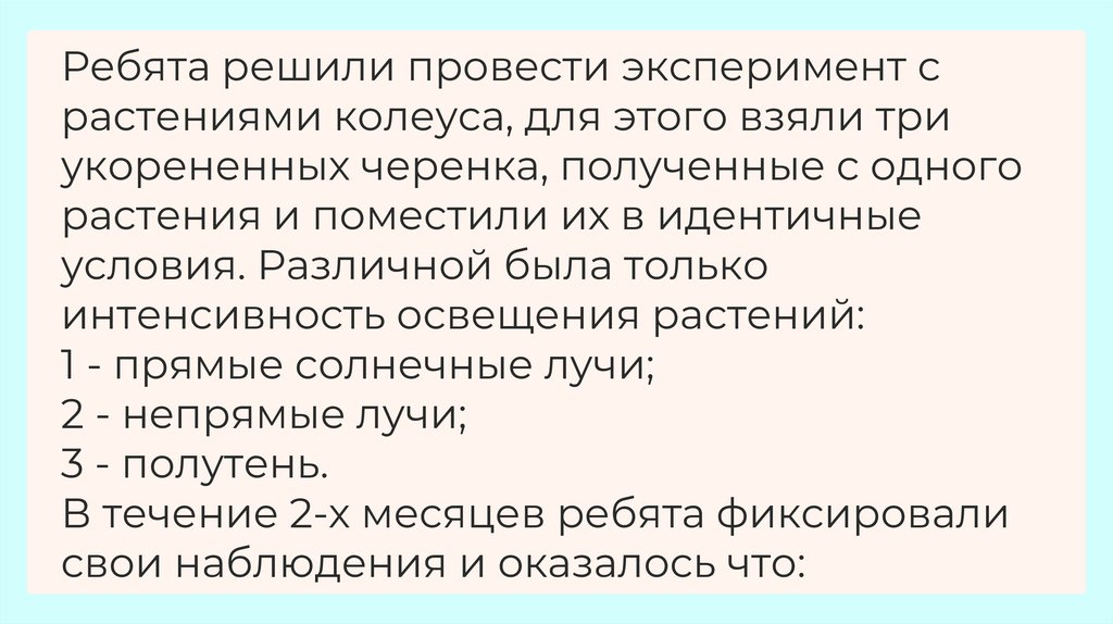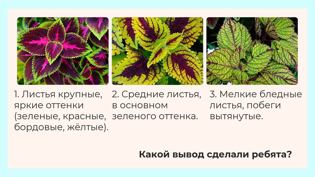 Ребята решили провести эксперимент срастениями колеуса, для этого взяли три