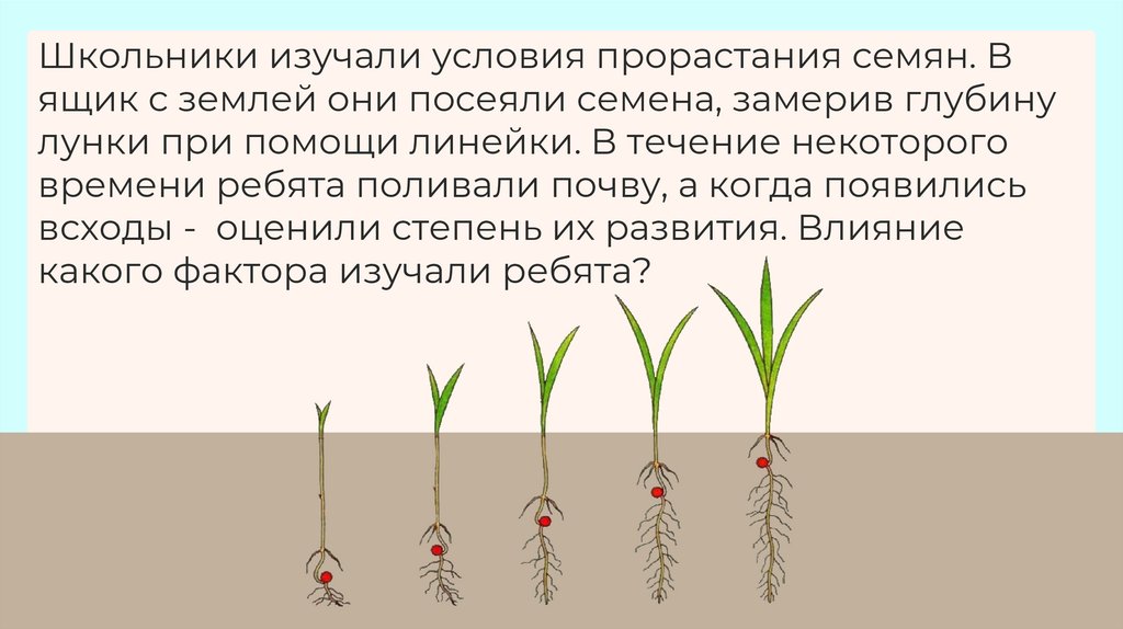 Школьники изучали условия прорастания семян. Вящик с землей они посеяли семена, замерив глубину