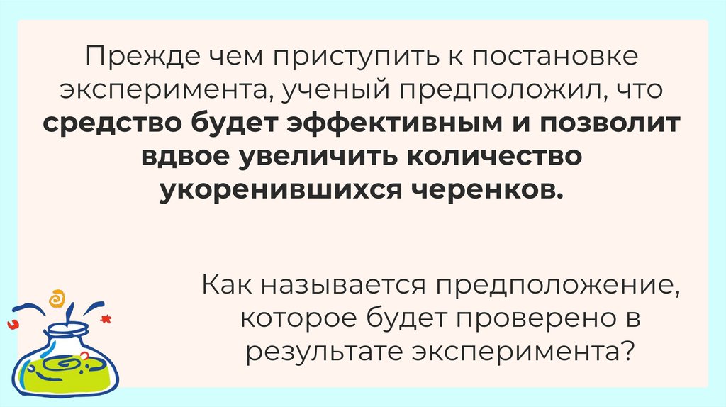 Прежде чем приступить к постановкеэксперимента, ученый предположил, что