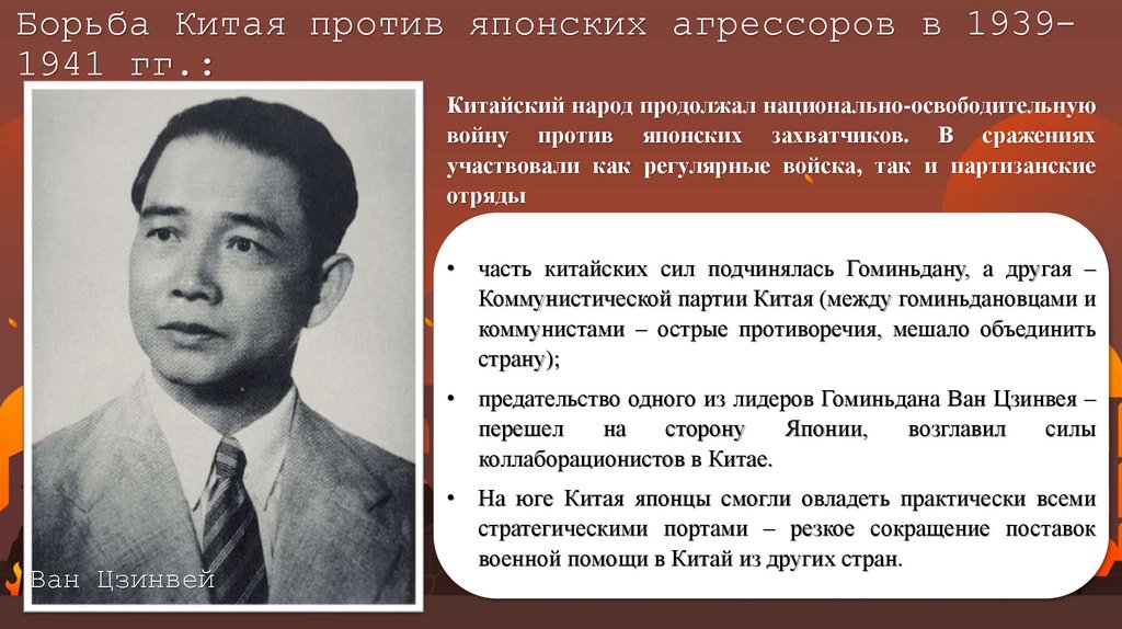 Борьба Китая против японских агрессоров в 19391941 гг.:Китайский народ продолжал национально-освободительную