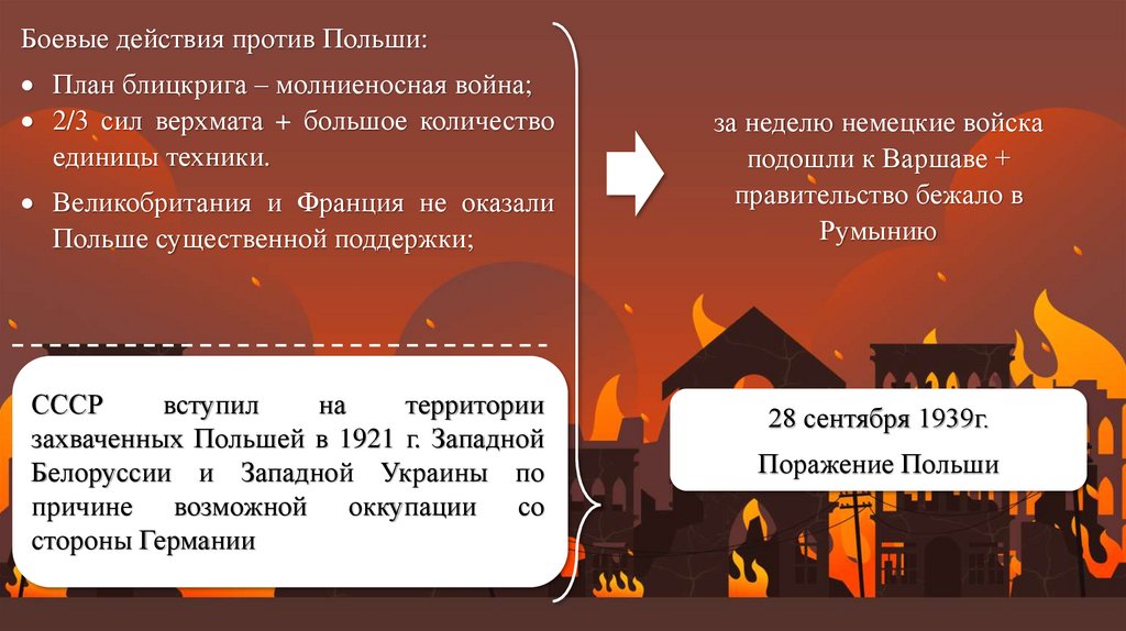 Боевые действия против Польши:План блицкрига – молниеносная война;