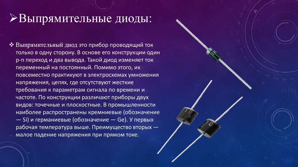 Выпрямительные диоды:Выпрямительный диод это прибор проводящий ток