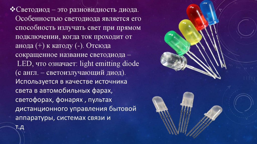 Светодиод – это разновидность диода.Особенностью светодиода является его
