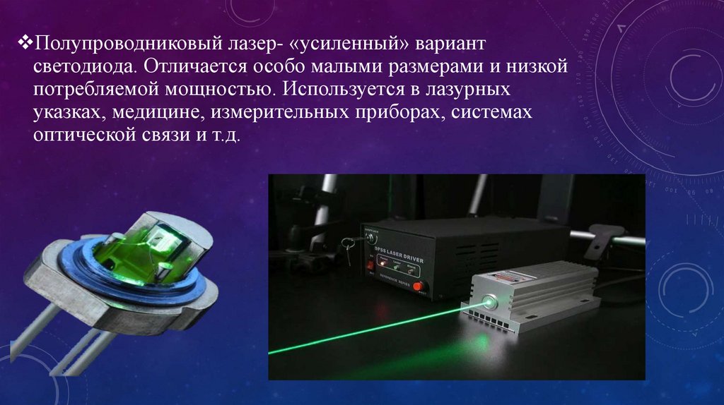 указках, медицине, измерительных приборах, системах
