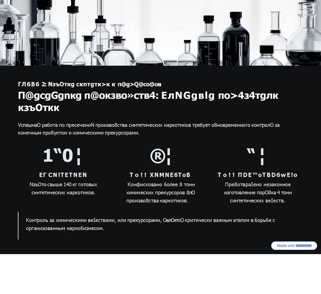 VспешнаO ра6ота по пресечениN произво8ства синтетических наркотиков тре6ует о8новременного контролO за