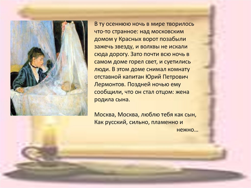 Лермонтов. Поздней ночью ему