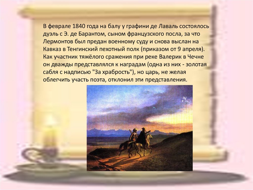Лермонтов был предан военному суду и снова выслан на