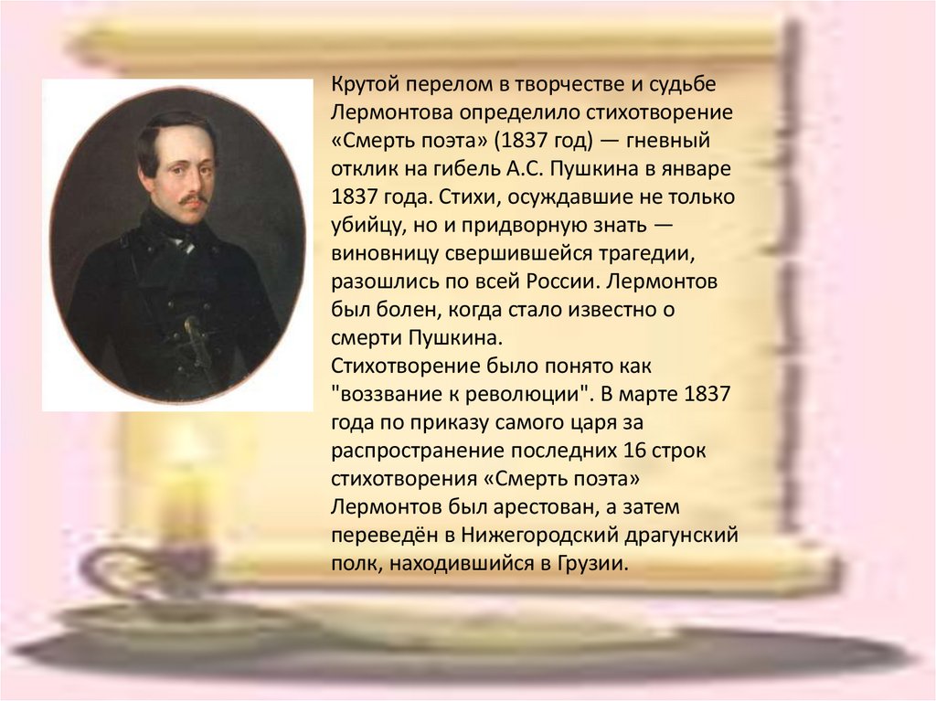 Крутой перелом в творчестве и судьбеЛермонтова определило стихотворение