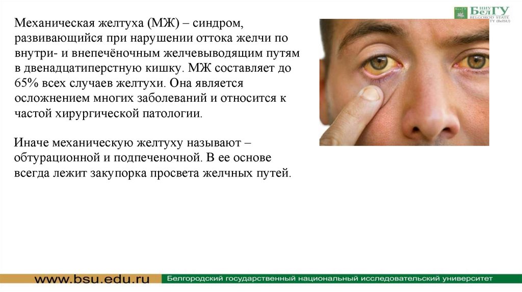 Механическая желтуха (МЖ) – синдром,развивающийся при нарушении оттока желчи по