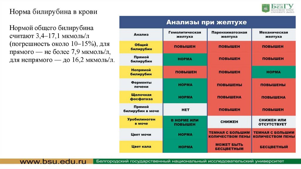 выводится с желчью. Содержание непрямого билирубина — около 96% от его общего