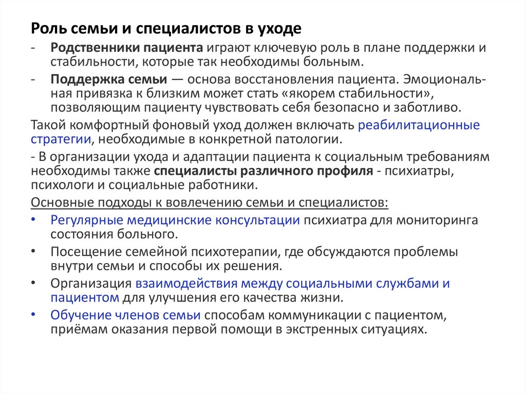• не оспаривать высказывания пациента, не доказывать абсурдность его идей и представлений, но не нужно и соглашаться с
