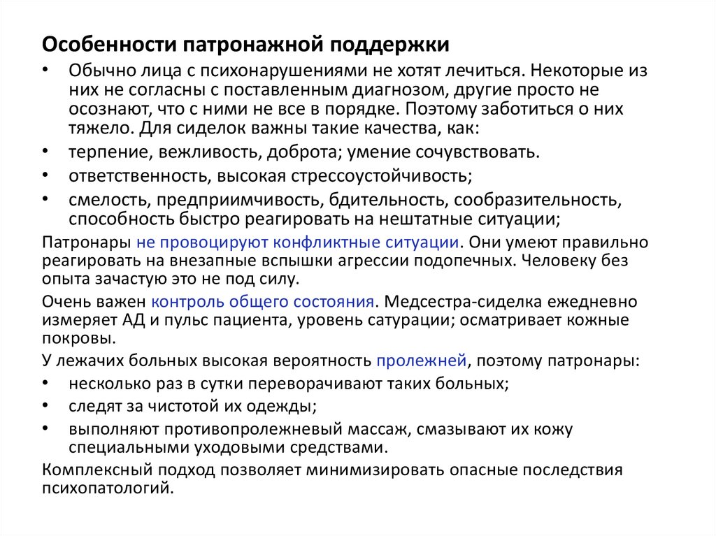 У лежачих больных высокая вероятность пролежней, поэтому патронары: