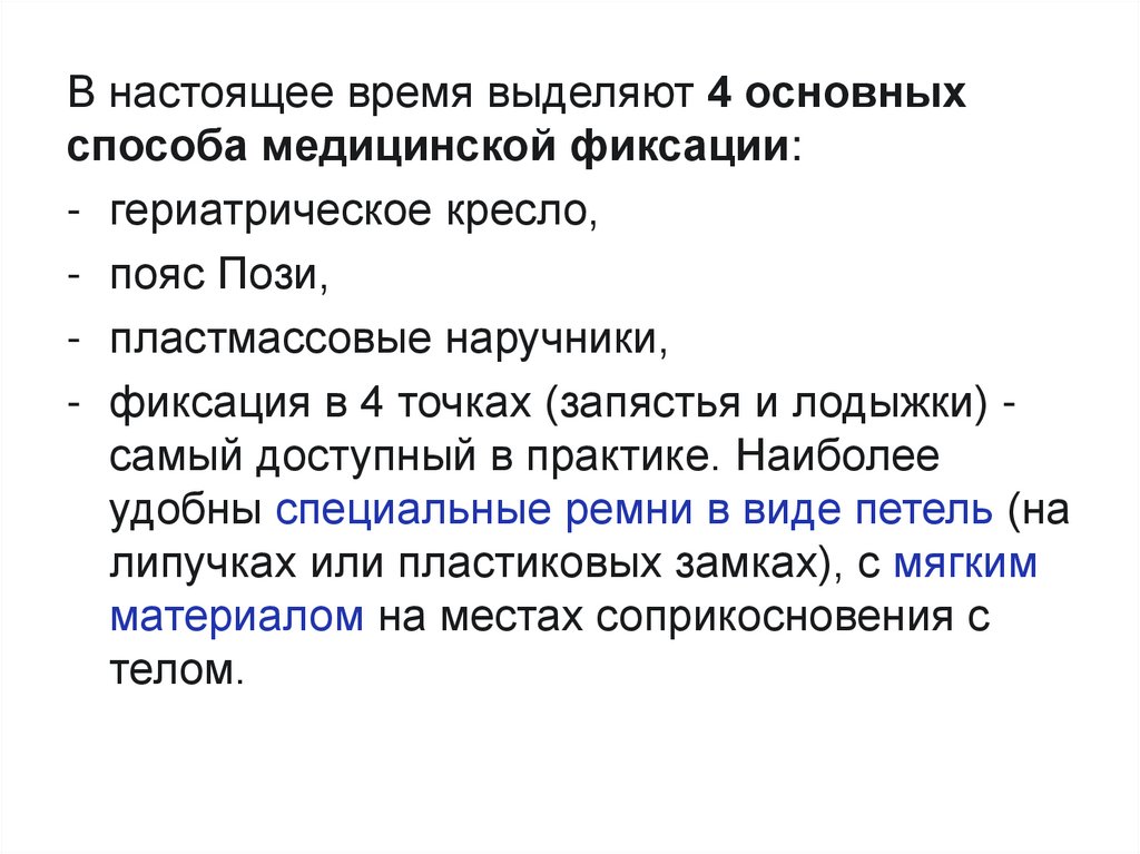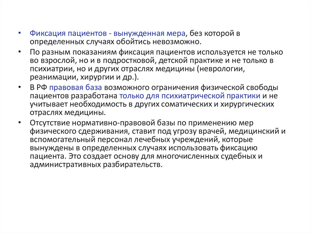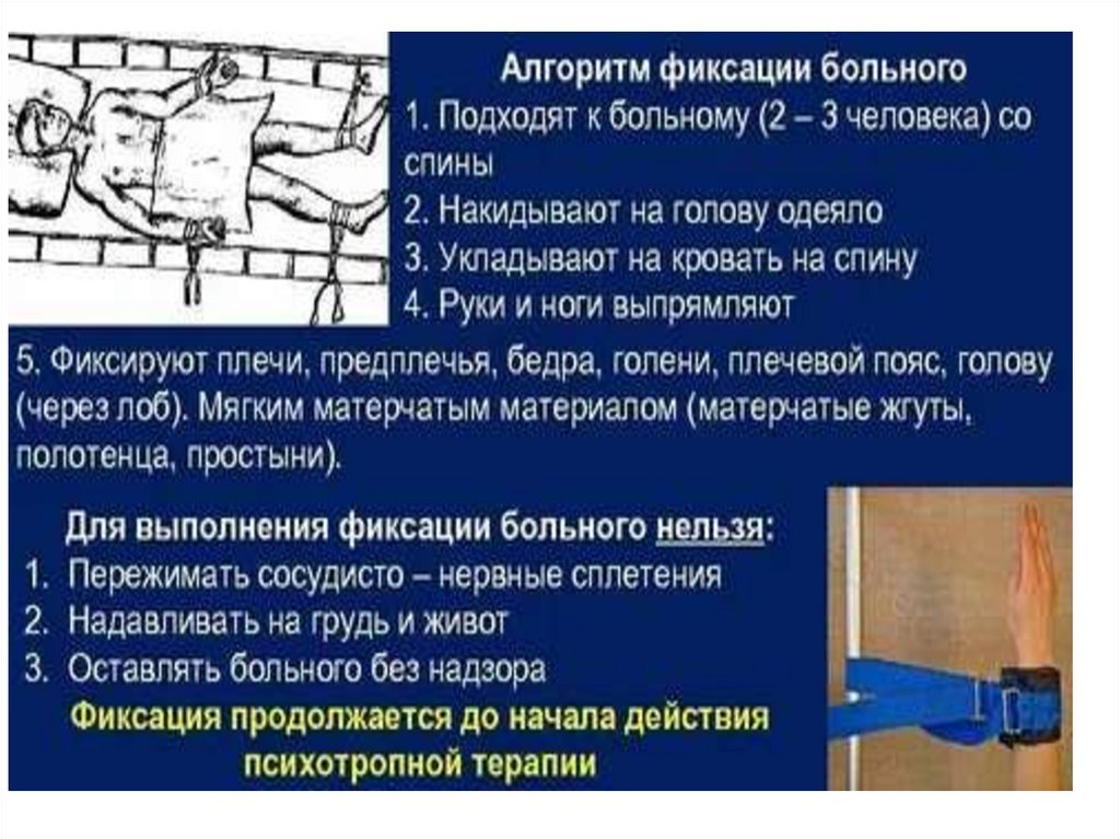 • Фиксация пациентов - вынужденная мера, без которой вопределенных случаях обойтись невозможно.