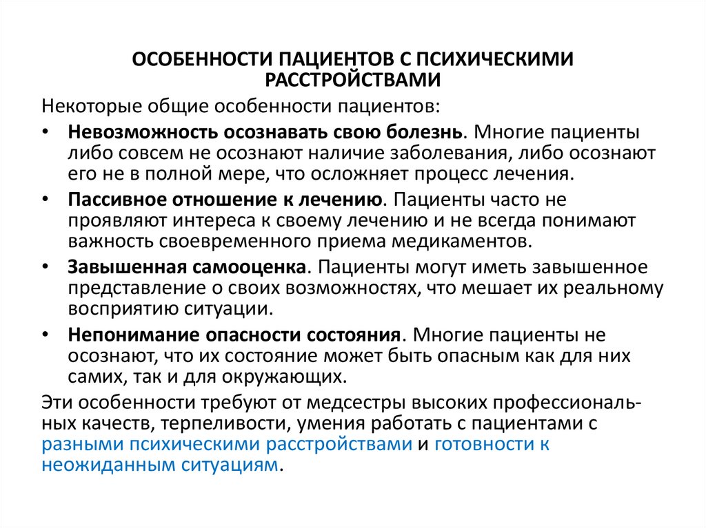 ОСОБЕННОСТИ ПАЦИЕНТОВ С ПСИХИЧЕСКИМИРАССТРОЙСТВАМИ