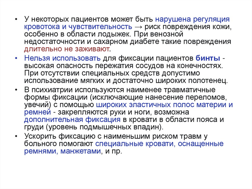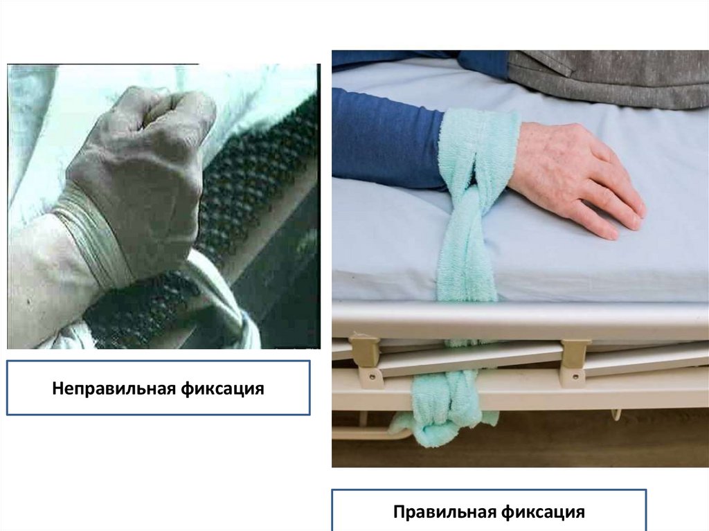 • Нельзя использовать для фиксации пациентов бинты высокая опасность пережатия сосудов на конечностях.
