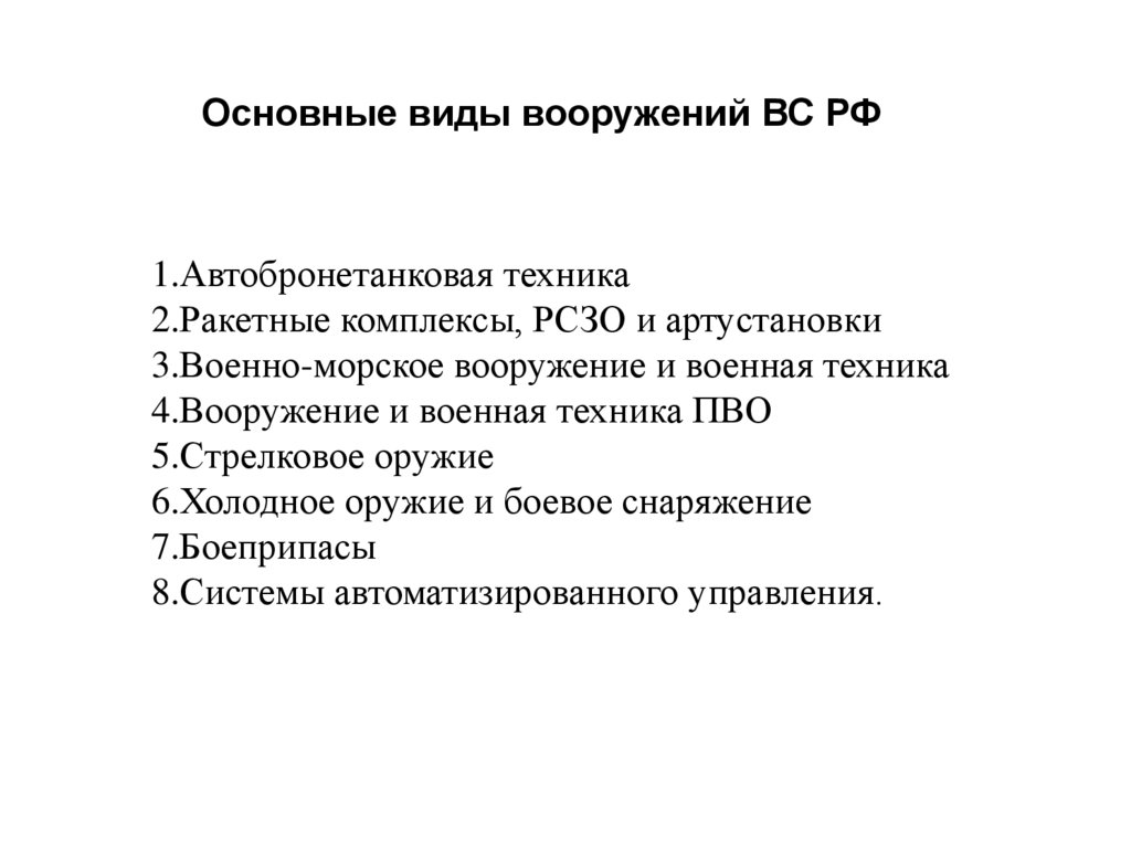 Основные виды вооружений ВС РФ1.Автобронетанковая техника