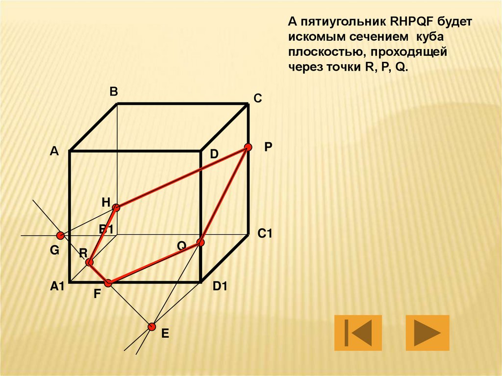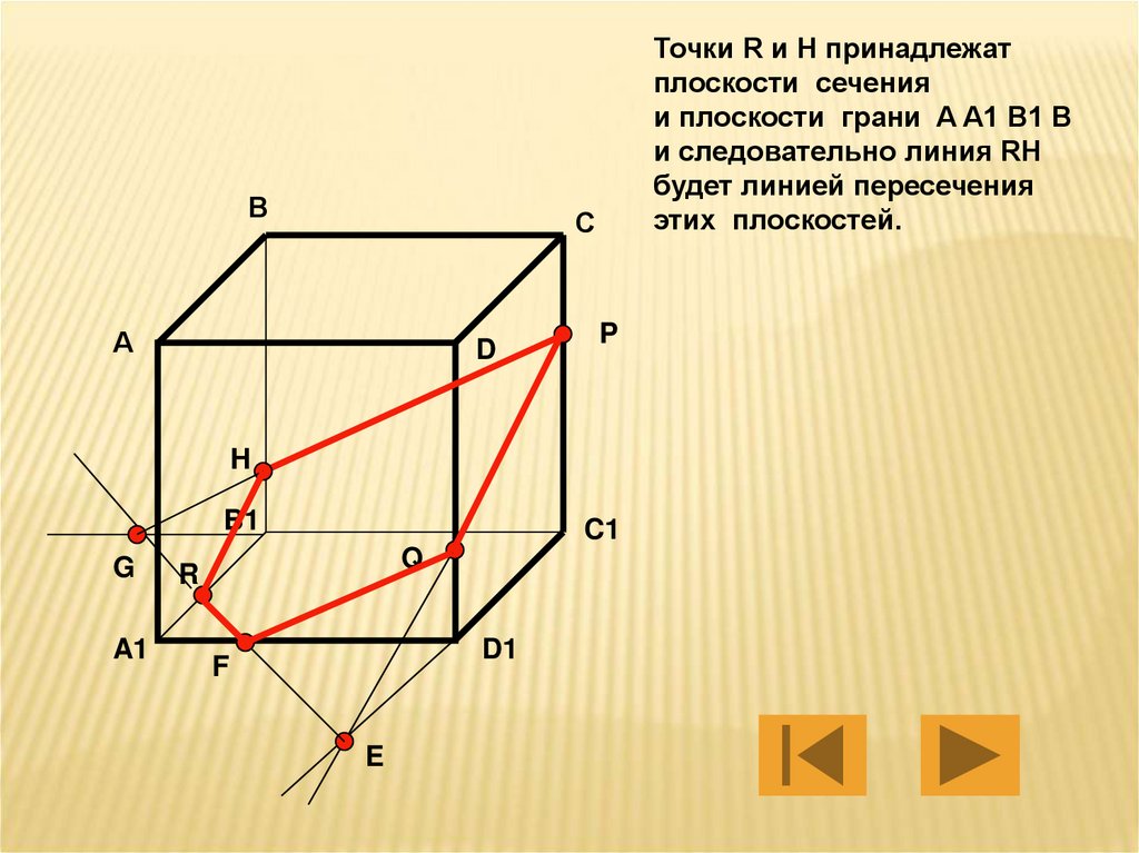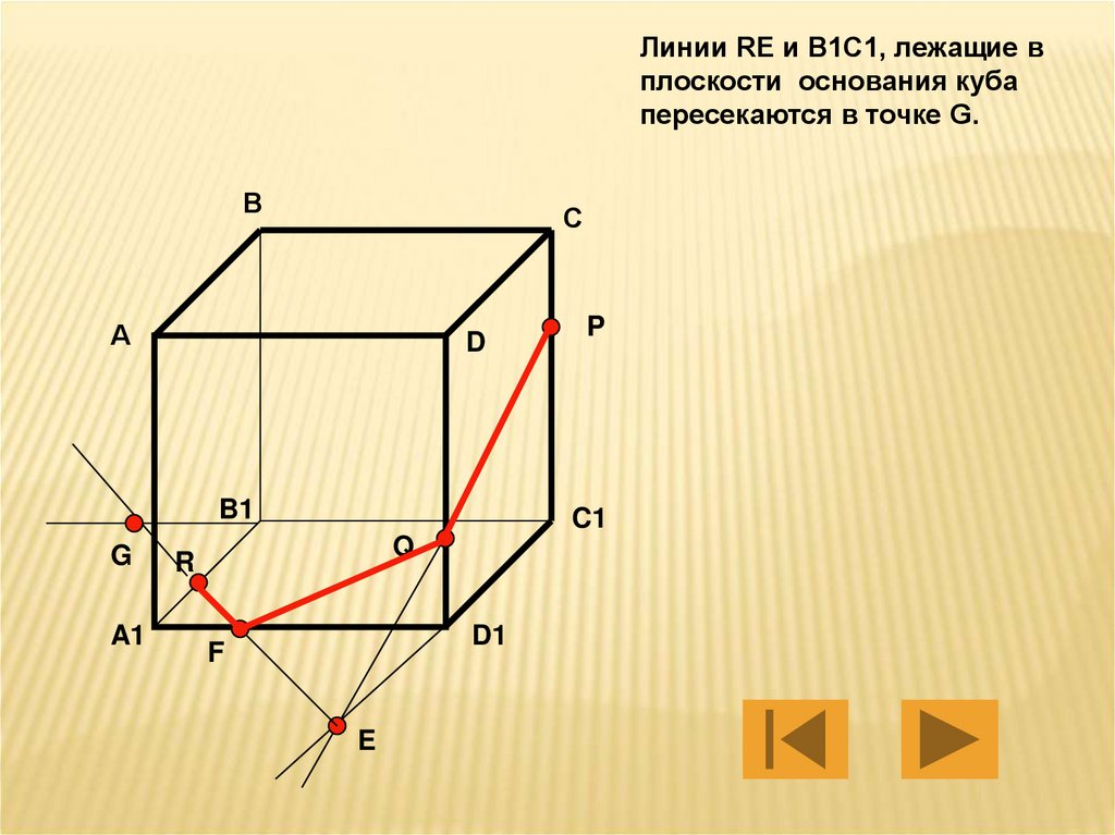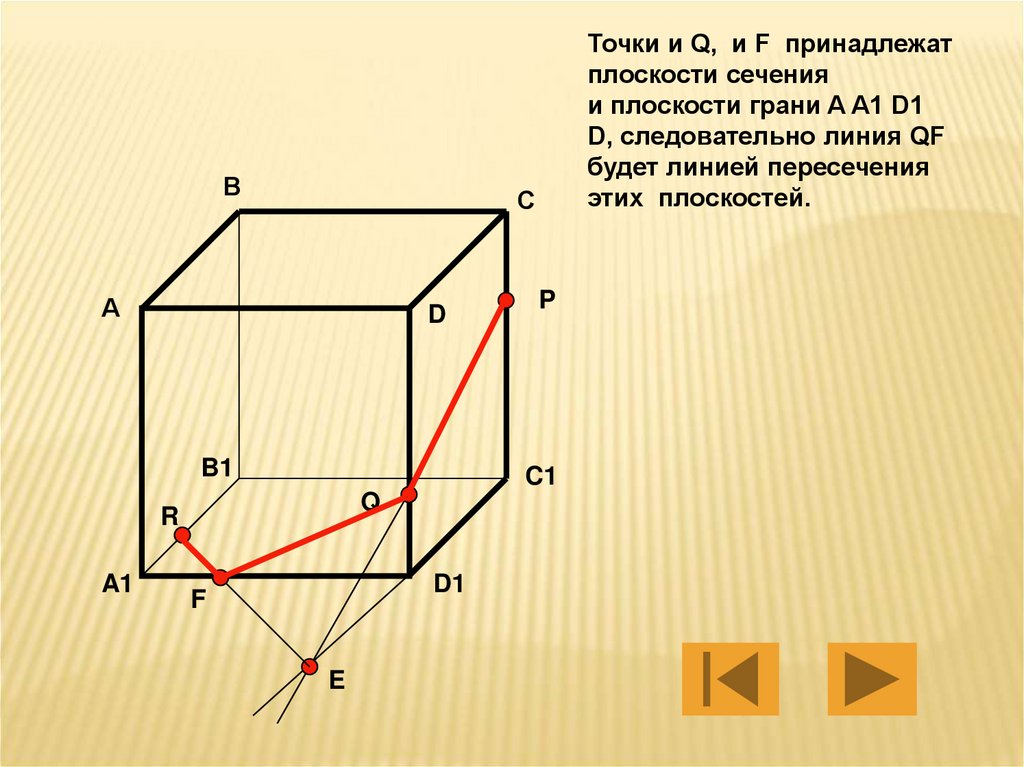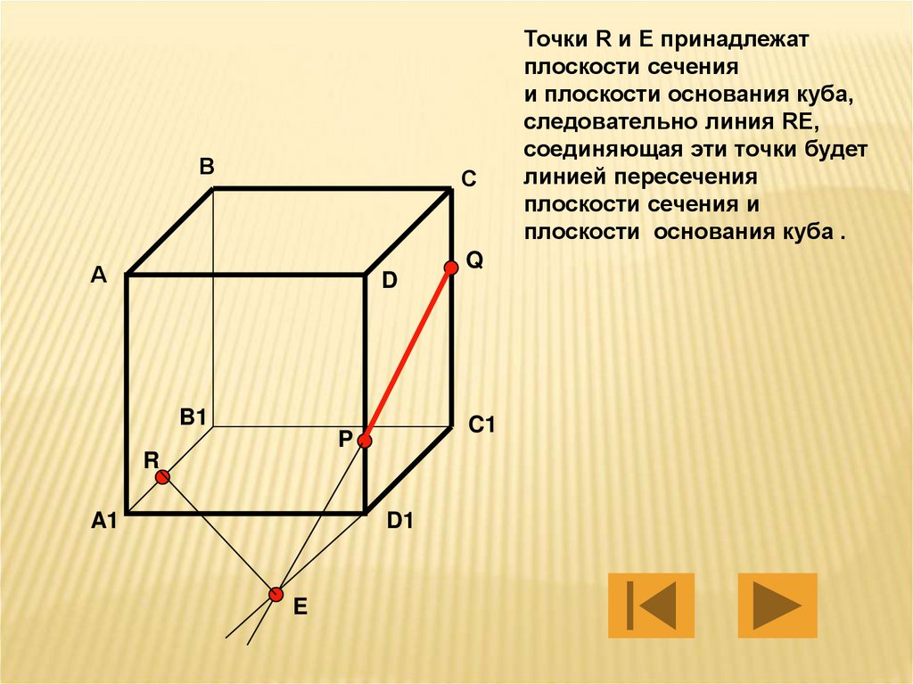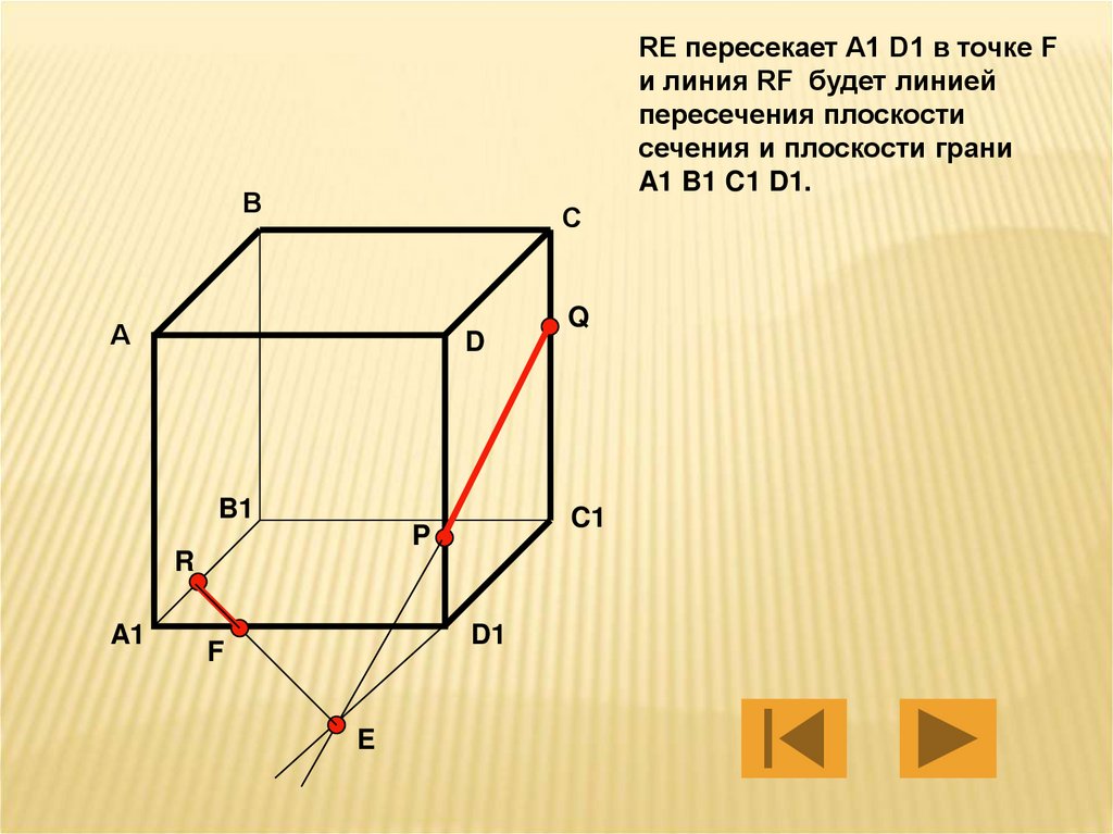 RE пересекает A1 D1 в точке Fи линия RF будет линией