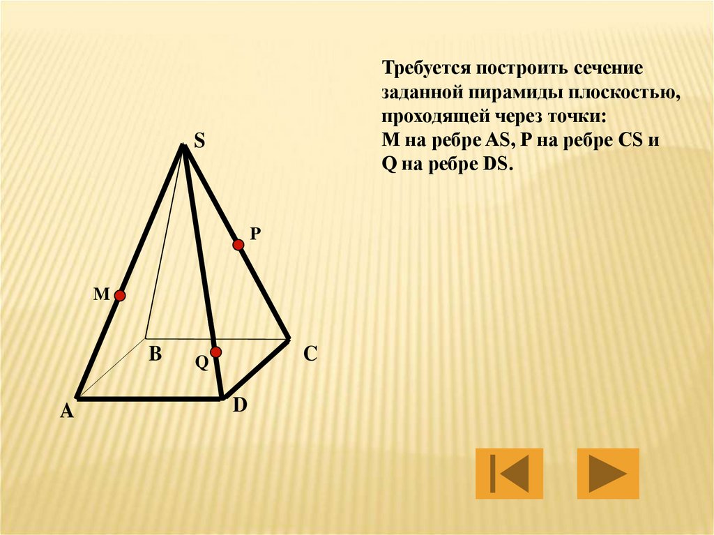 Требуется построить сечениезаданной пирамиды плоскостью,