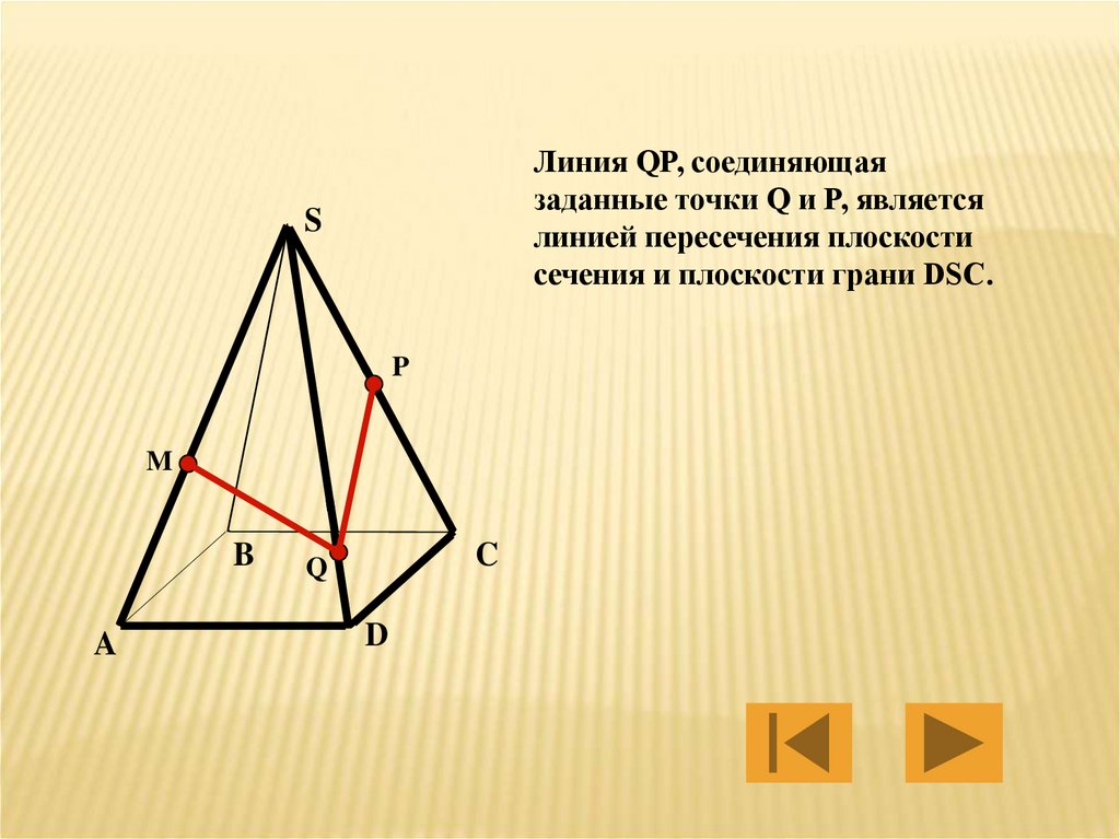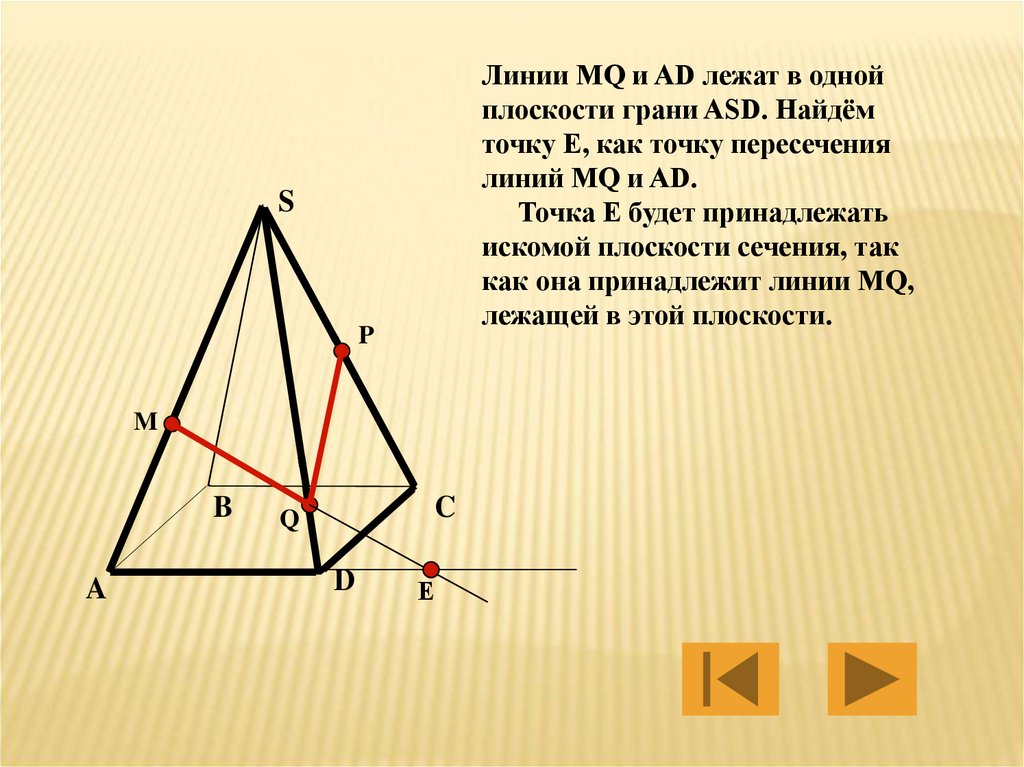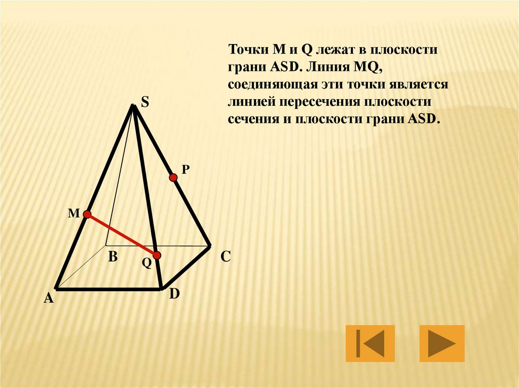 Линии MQ и AD лежат в однойплоскости грани ASD. Найдём